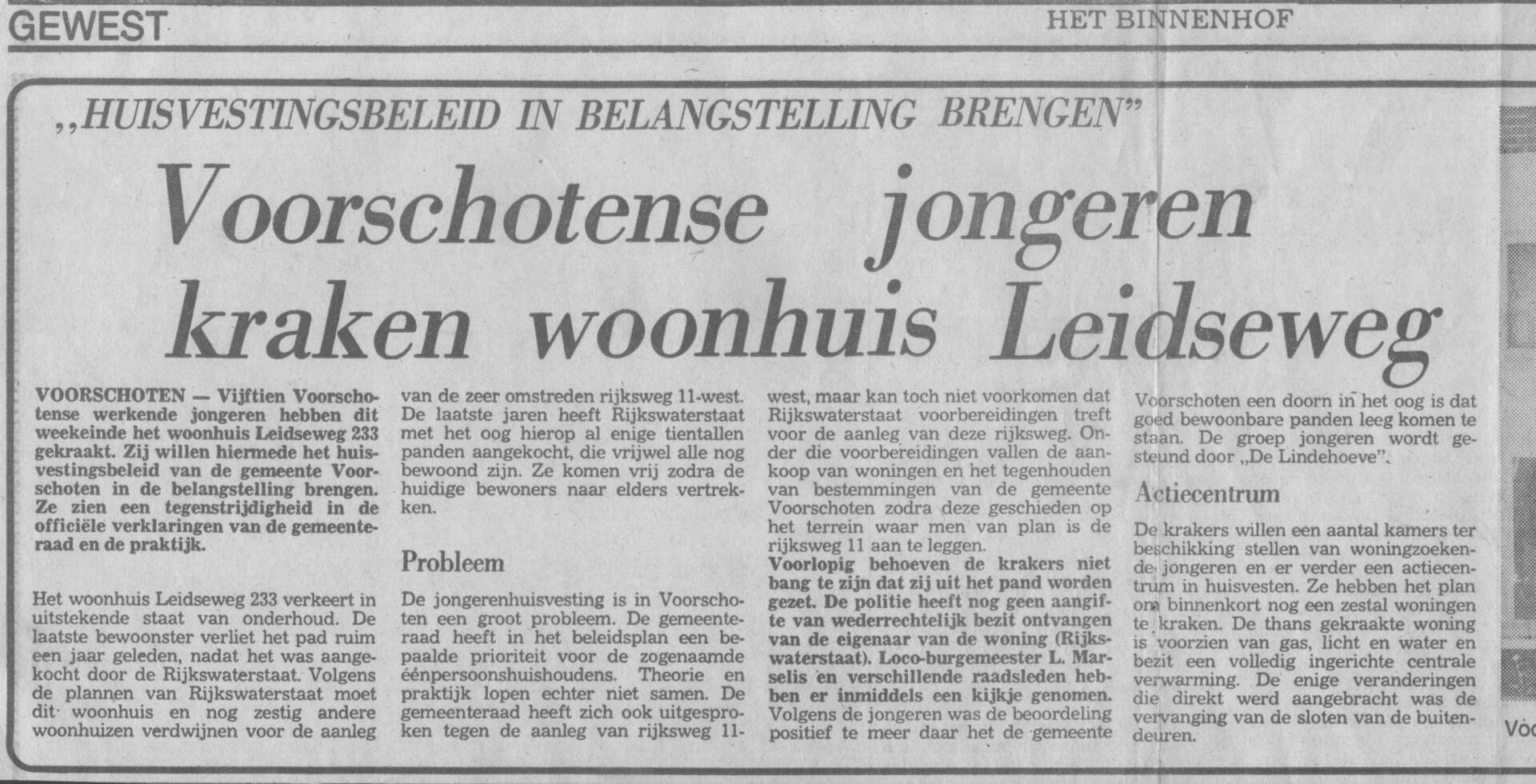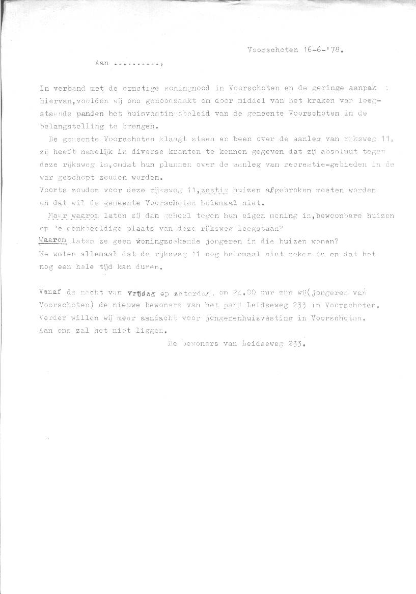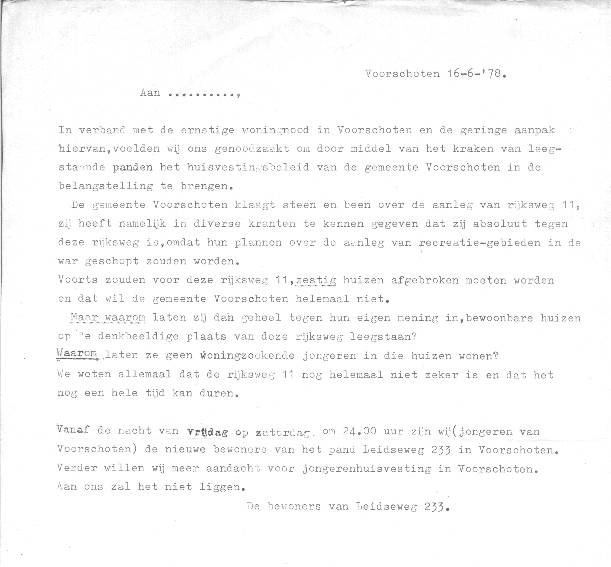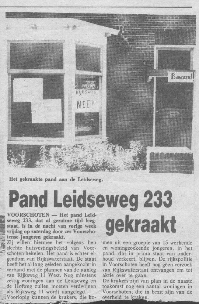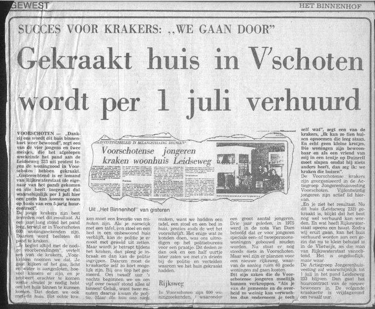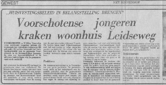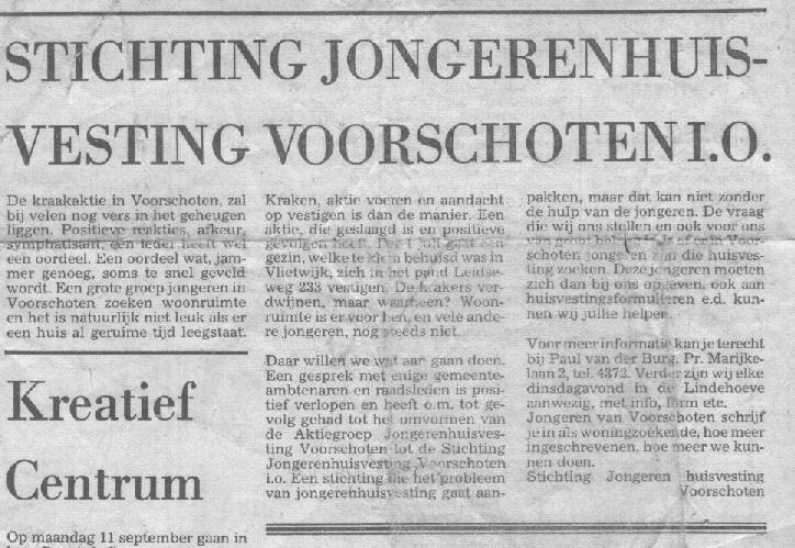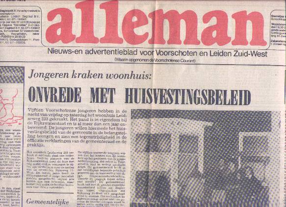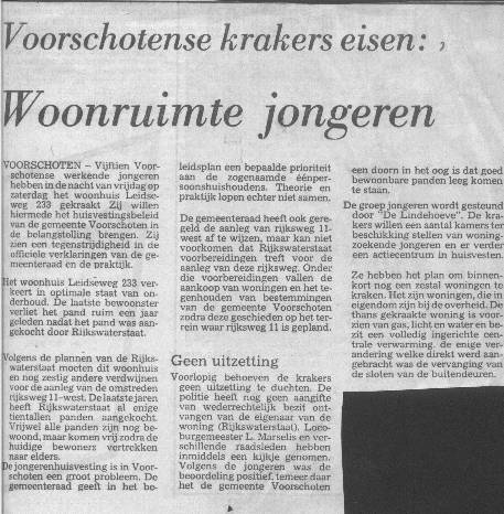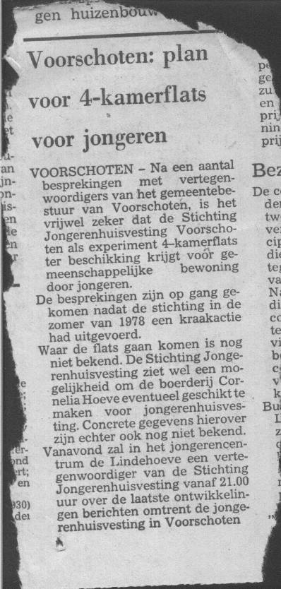 Jongerenhuisvesting. Kraakacties in Voorschoten. Niet geëntameerd door de Lindehoeve, wel uitgevoerd door Lindehoeve medewerkers.