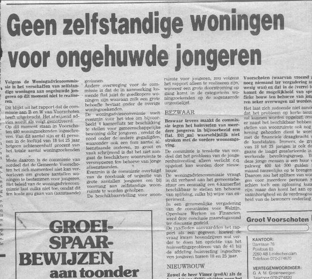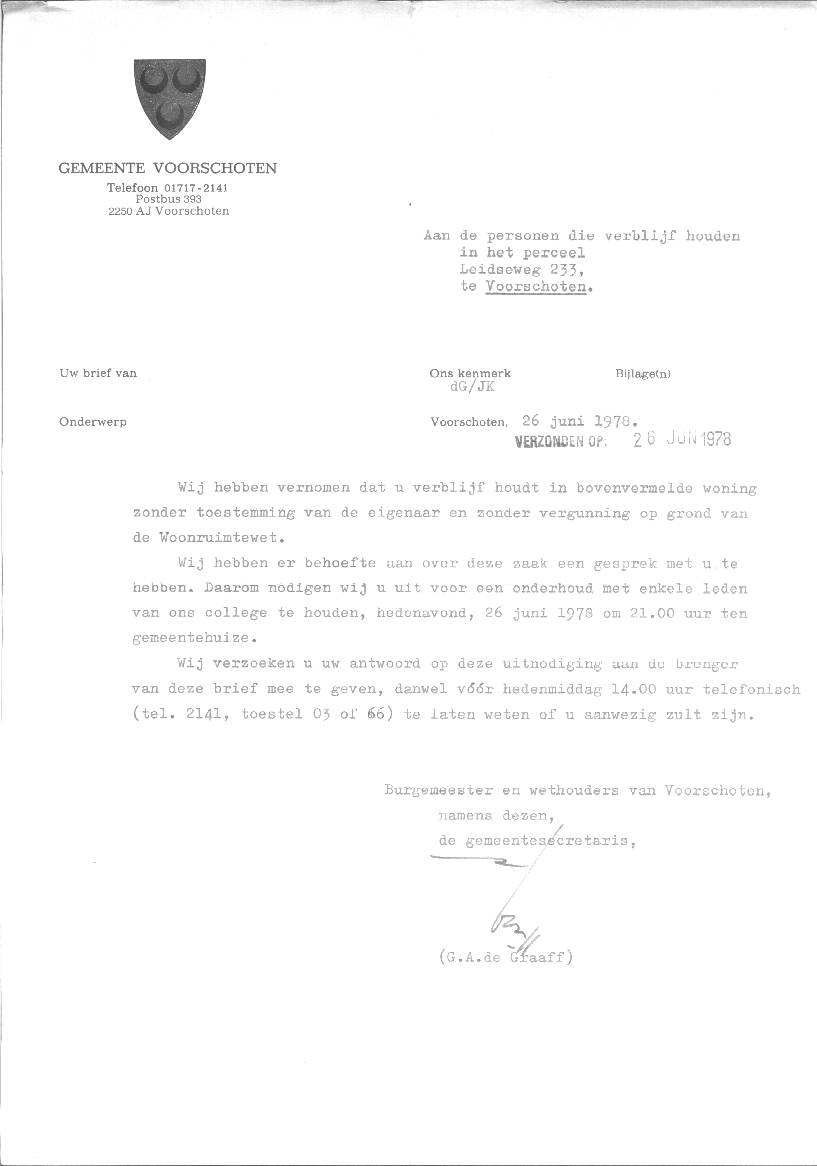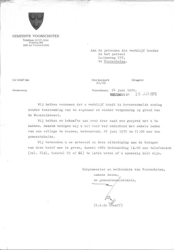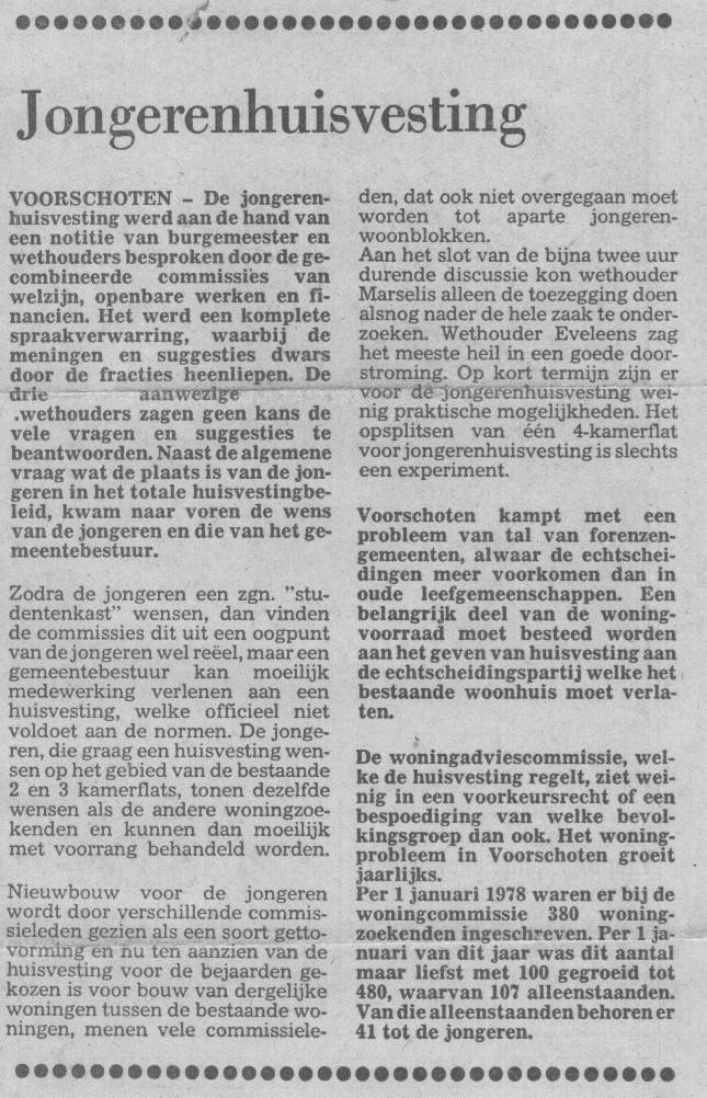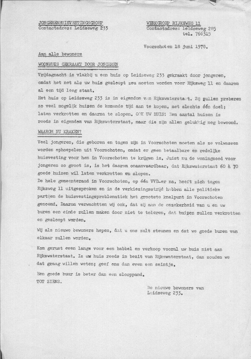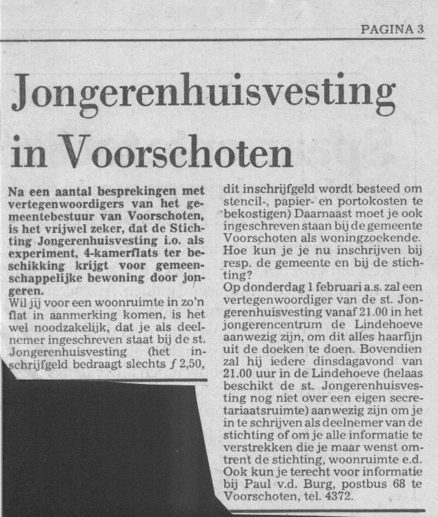 Jongerenhuisvesting. Kraakacties in Voorschoten. Niet geëntameerd door de Lindehoeve, wel uitgevoerd door Lindehoeve medewerkers.